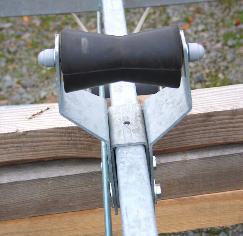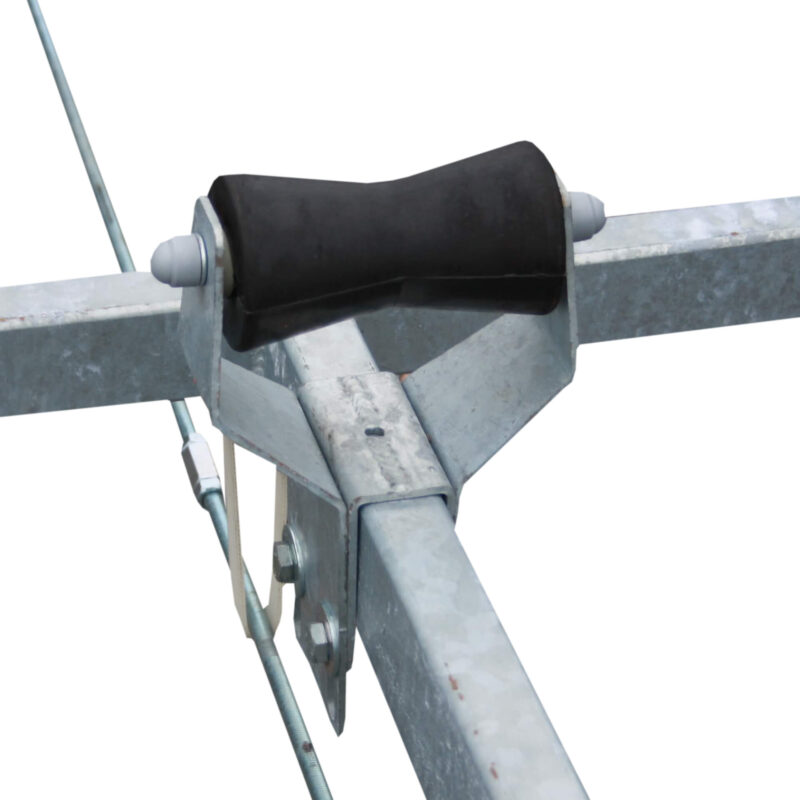 Høy kalesje over gitterporter med stativ festet over gitterportene.