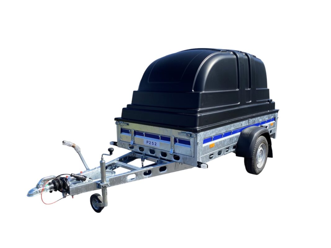 Pris uten gitterrammer 32900 kr Incl. mva 26320 kr Excl. mva Bygg din tilhengerTilhenger med plastkåpe P252, brems 750/1000/1200/1300 kg