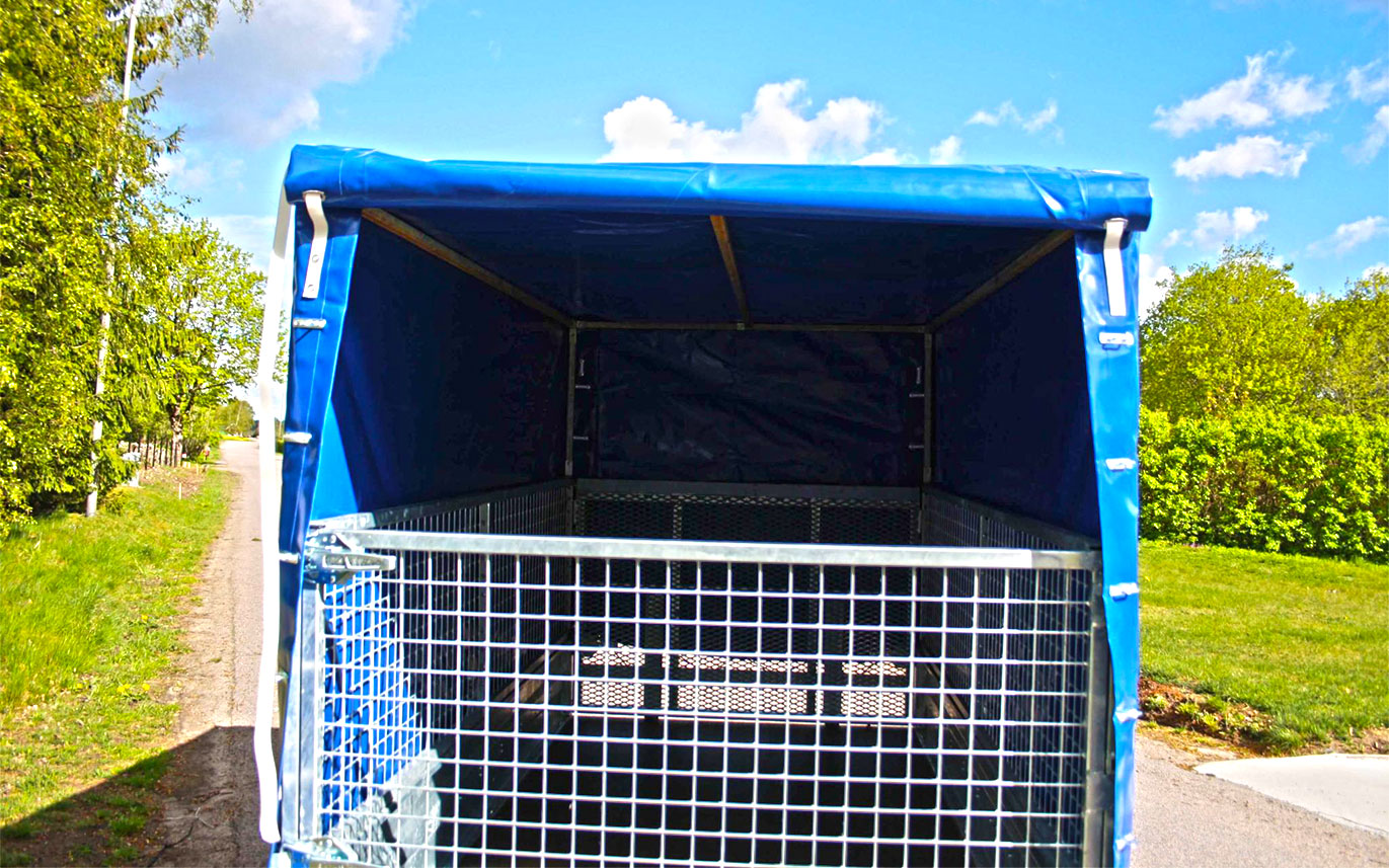 Høy kalesje over gitterporter med stativ festet over gitterportene.